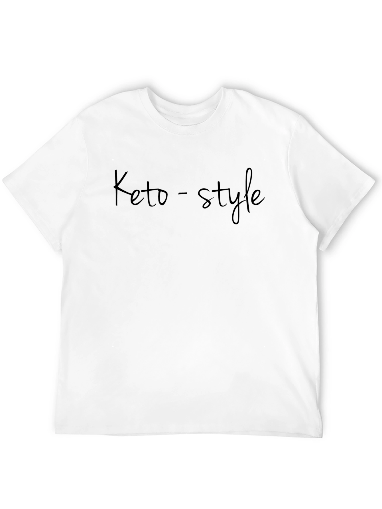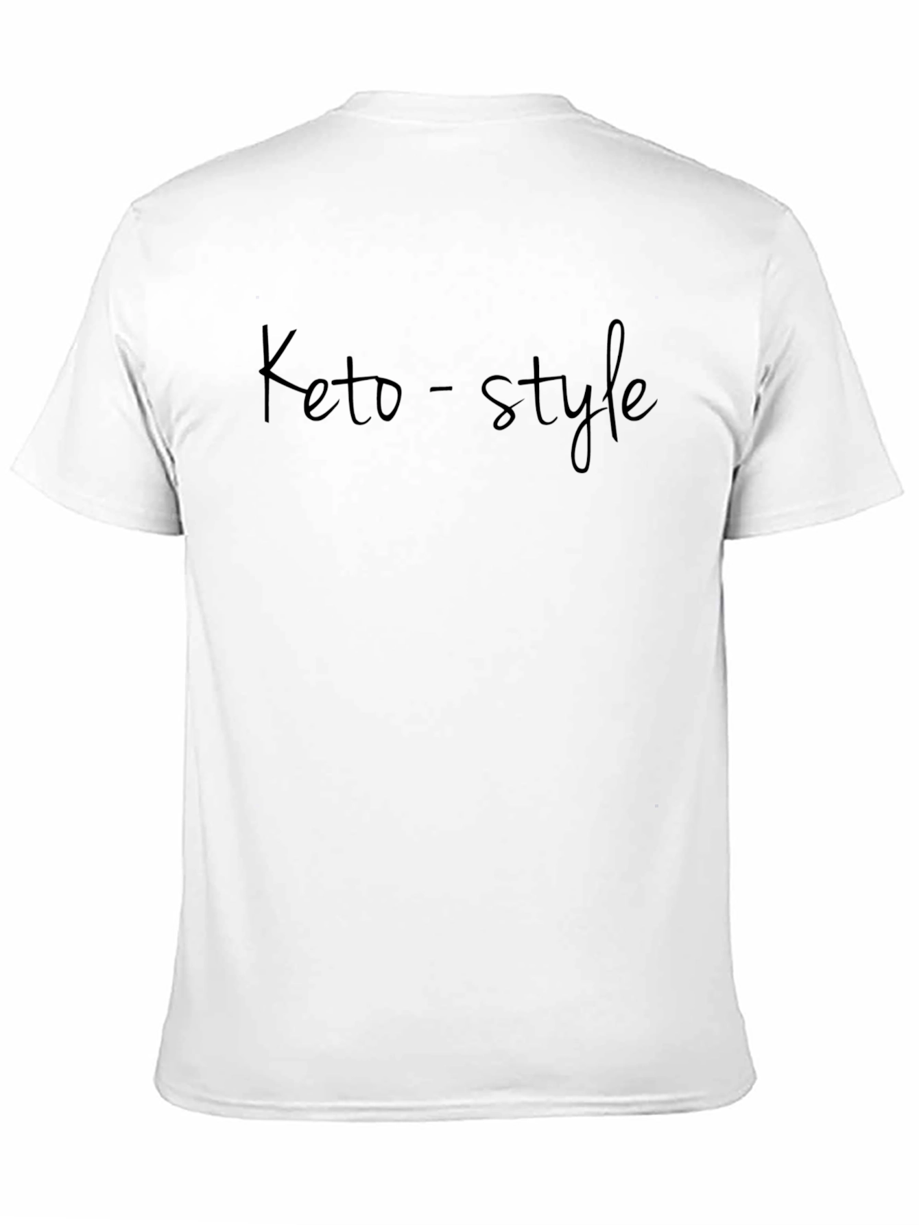 This classic black t-shirt features the phrase 'Keto-style' printed across the chest. Made from a comfortable, soft fabric, this tee is perfect for everyday wear. The minimalist design makes it easy to pair with any outfit, whether you're hitting the gym, running errands, or just relaxing at home. The black color offers a sleek, versatile look. Show off your lifestyle choice with this stylish and comfortable t-shirt. The relaxed fit ensures all-day comfort, and the durable construction guarantees long-lasting wear. A must-have for anyone following the keto diet!