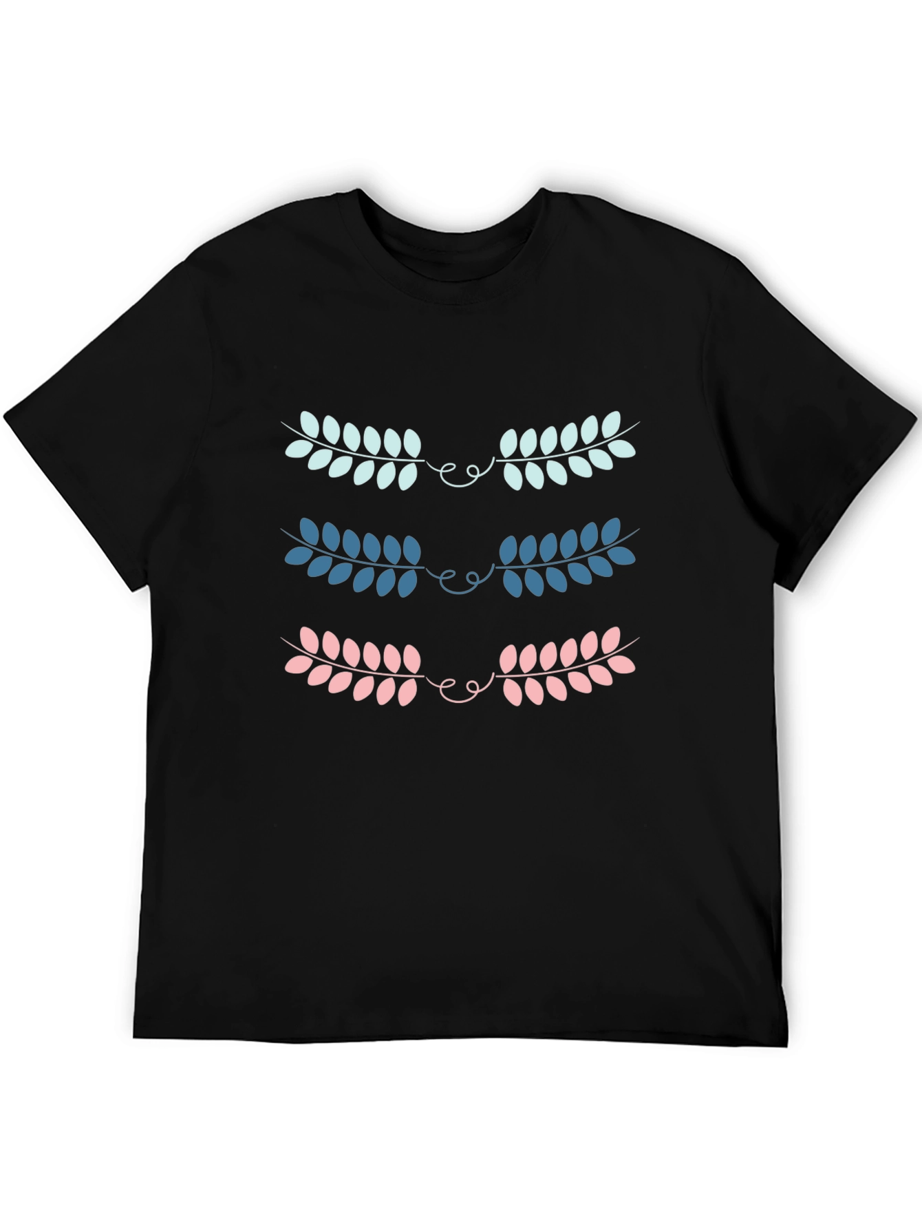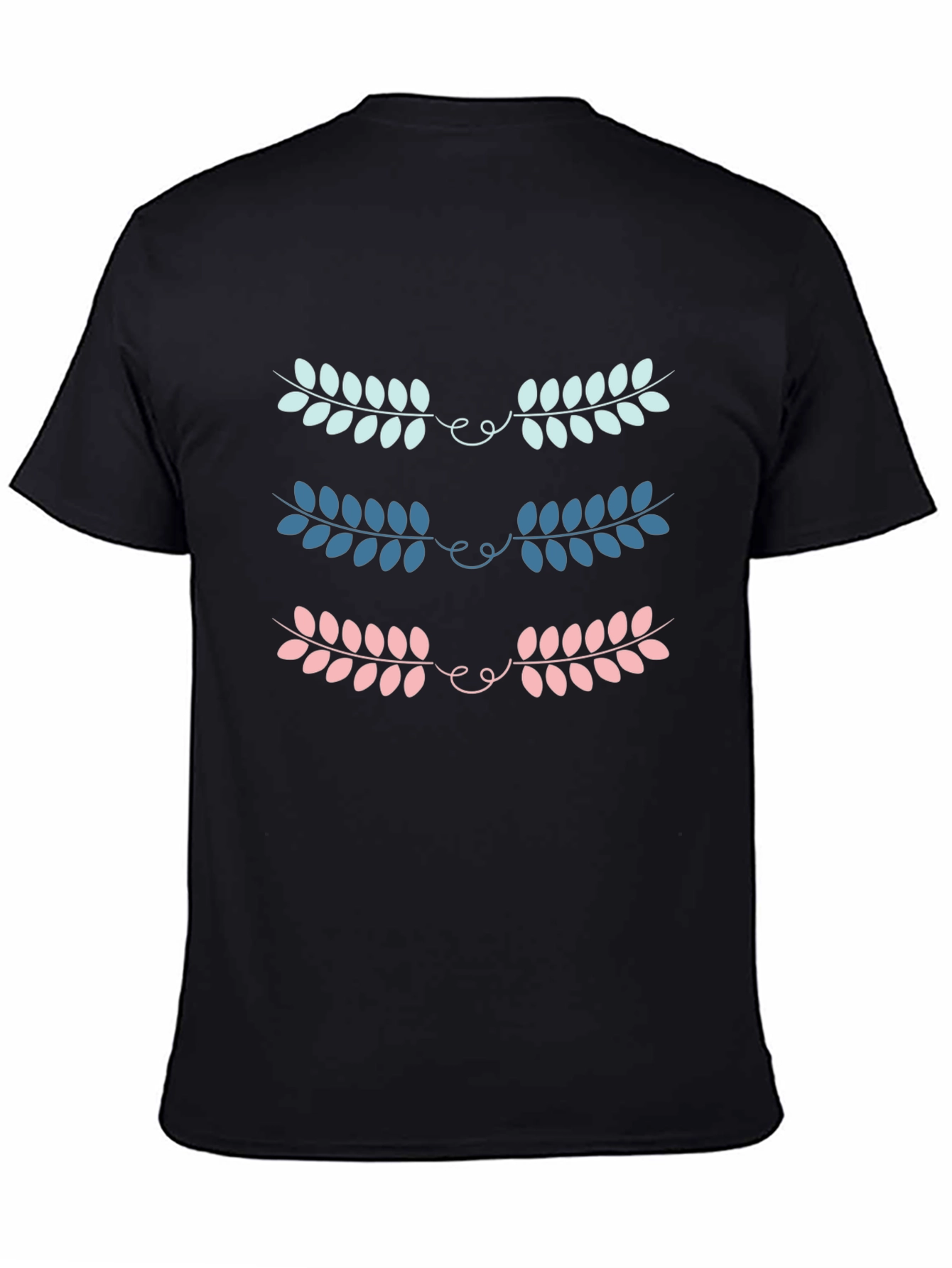 Elevate your casual style with this distinctive black tee. Featuring a unique graphic design of laurel leaves in varied colors, this shirt offers a blend of modern design and comfort. The shirt showcases laurel leaf patterns in a horizontal layout, adding a touch of elegance. Crafted from comfortable materials, this tee is perfect for everyday wear or casual outings. Pair it with jeans or shorts for a relaxed yet stylish look. The black background enhances the colorful design, making it a versatile addition to any wardrobe.